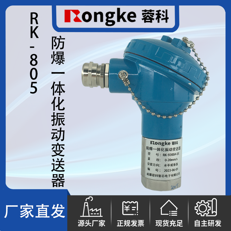 两线制防爆振动传感器/蓉科RK将振动速度传感器、精密测量电路集成在一起,构成高精度振动测量系统,实现了传统的“传感器+监测仪表模式的振动测量系统的功能,该变送器可直接连接DCS、PLC或其它设备,是风机、电动机、水泵等工厂设备振动测量的理想选择。